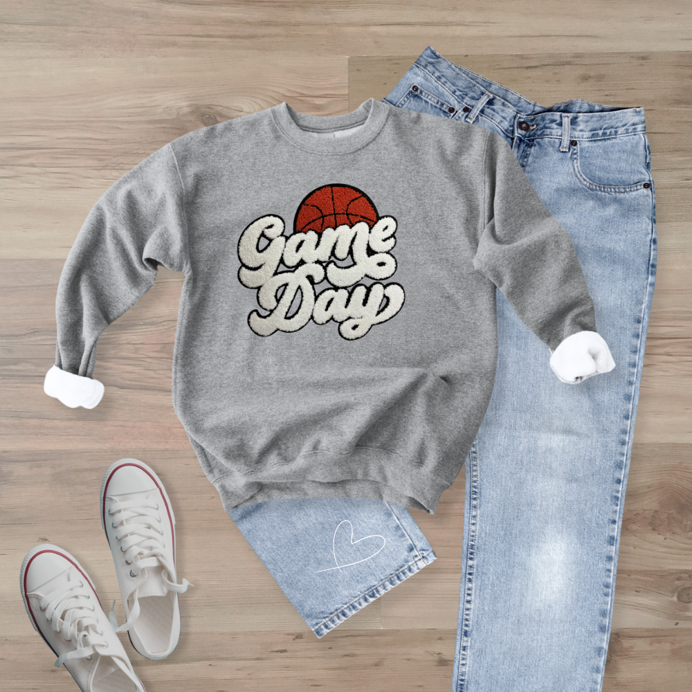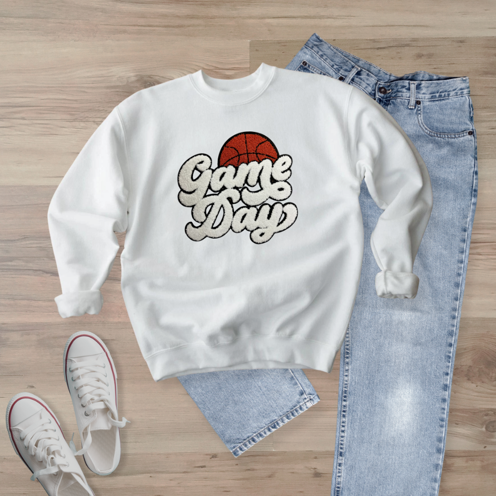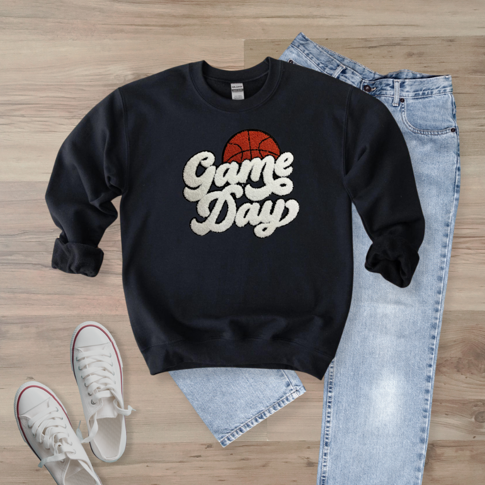 Game Day Basketball Chenille Patch Unisex Gildan 18000 Sweatshirt