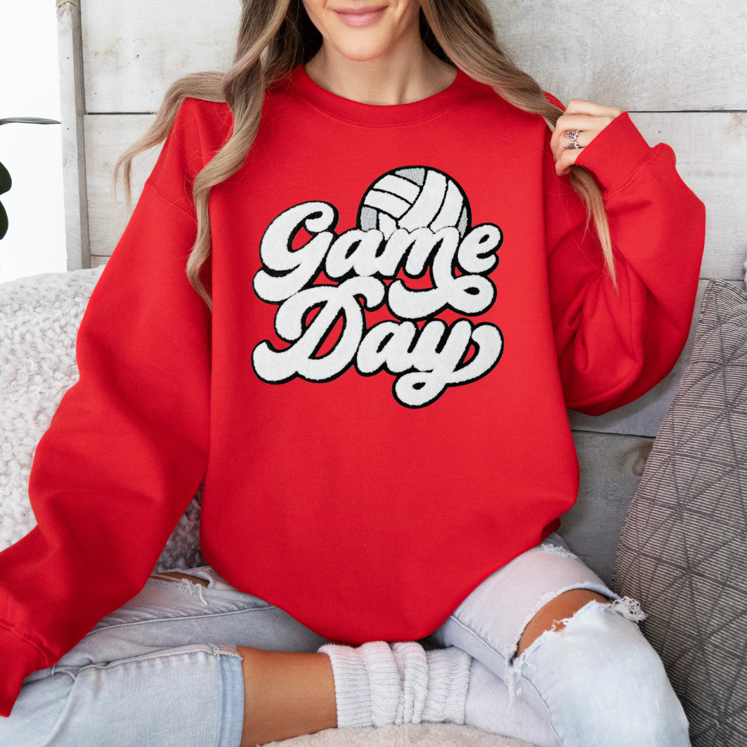 Game Day Volleyball Chenille Patch Unisex Gildan 18000 Sweatshirt