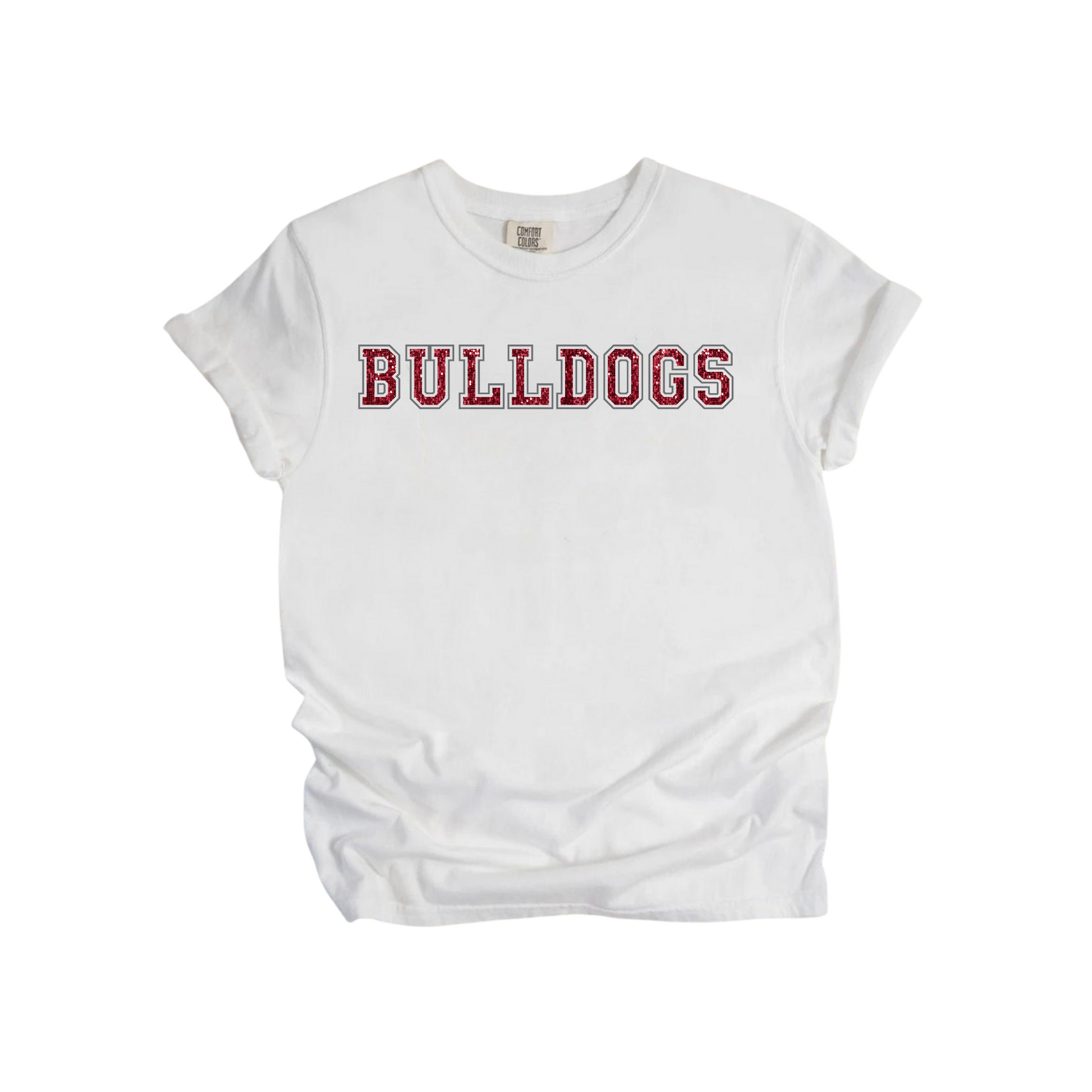 Glitter Varsity BULLDOGS Comfort Colors Tee (Adult and Youth Size)