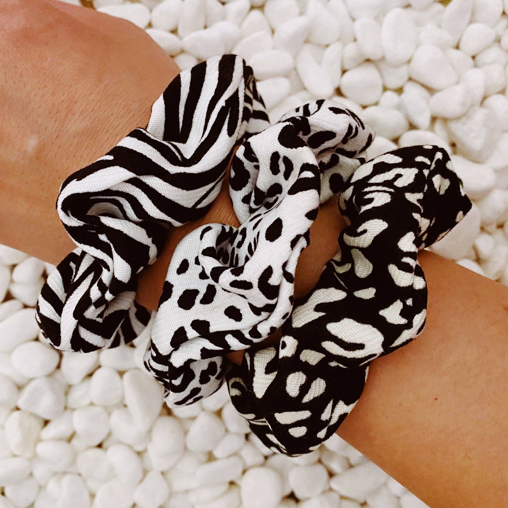 The set features three unique animal prints, nicely blended with black and white. Perfect for adding a subtle touch of wildness to any look, this set is a must-have for fashionistas.